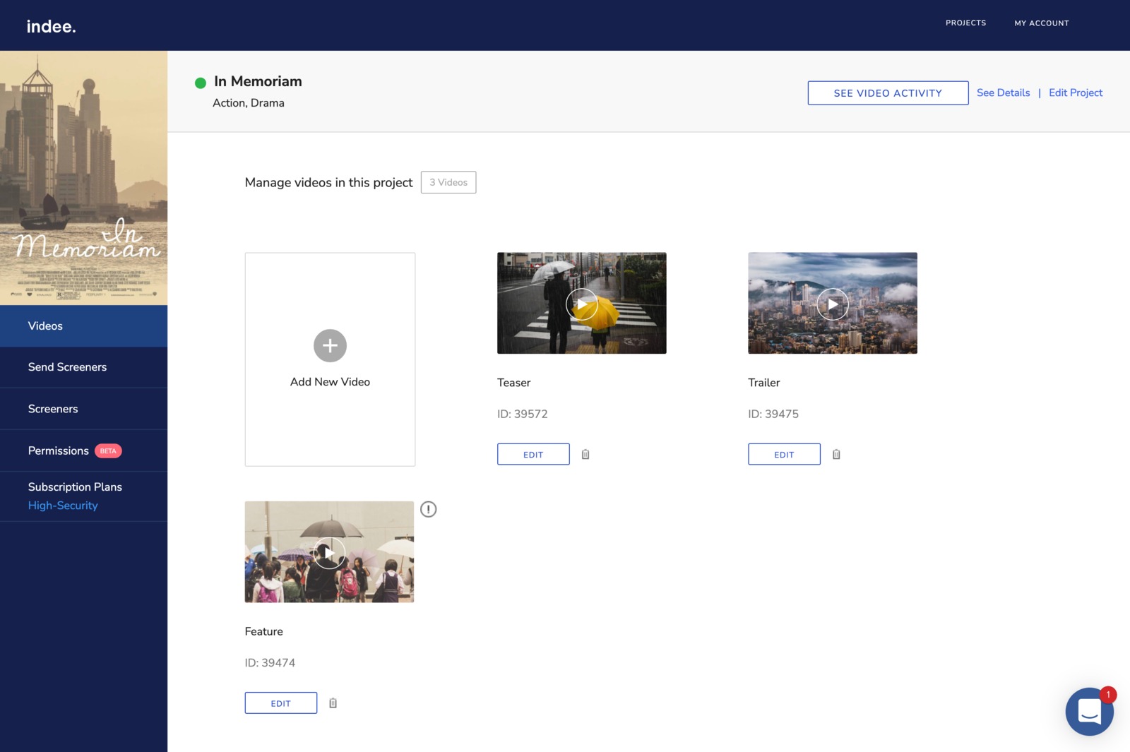 On the top panel, there is a "See Video Activity" button on the right. This section provides a log of all the videos that have been uploaded for a particular project, along with the following details: