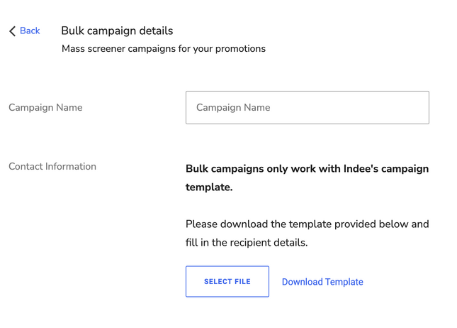 Oftentimes, you’ll want to screen your titles to a large audience. Indee’s campaigns feature available only on the High - Security plan, is perfect for generating hundreds of screeners in one go.